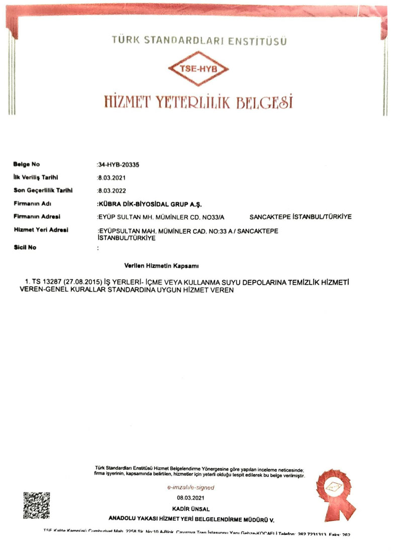 Su Deposu Temizlik – Dezenfeksiyon ve Yalıtım